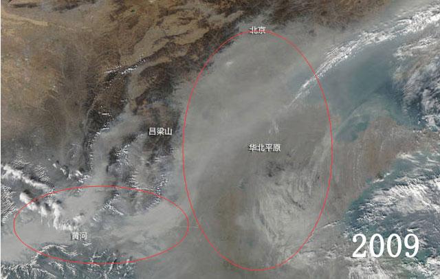 随着2008年奥运会结束,北京原有的限制政策解除,2009年京津翼地区重新被一层厚重的棕色雾霾所笼罩,并且开始像西移动,此时的空气污染已相当严重。